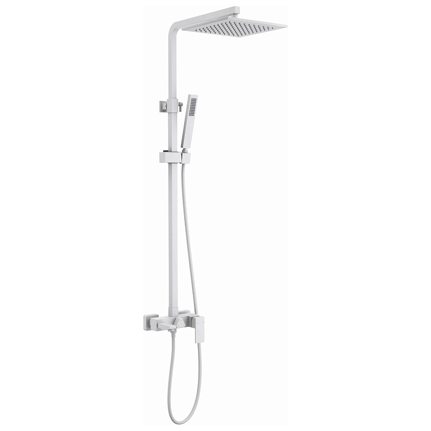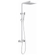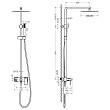 Стойка тропического душа регулируется по высоте, держатель ручной лейки можно отрегулировать по высоте и наклону.