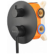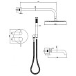 Комплектация: смеситель скрытого монтажа - 1 шт. ; кронштейн верхнего душа - 1 шт. ; верхний душ - 1 шт. ; излив - 1 шт. ; держатель ручной лейки - 1 шт. ; ручная лейка - 1 шт. ; шланг - 1 шт. ; ручки управления - 2 шт. ; отражатели - 4 шт. ; накладка на переключатель режимов - 1 шт. ; паспорт - 1 шт.