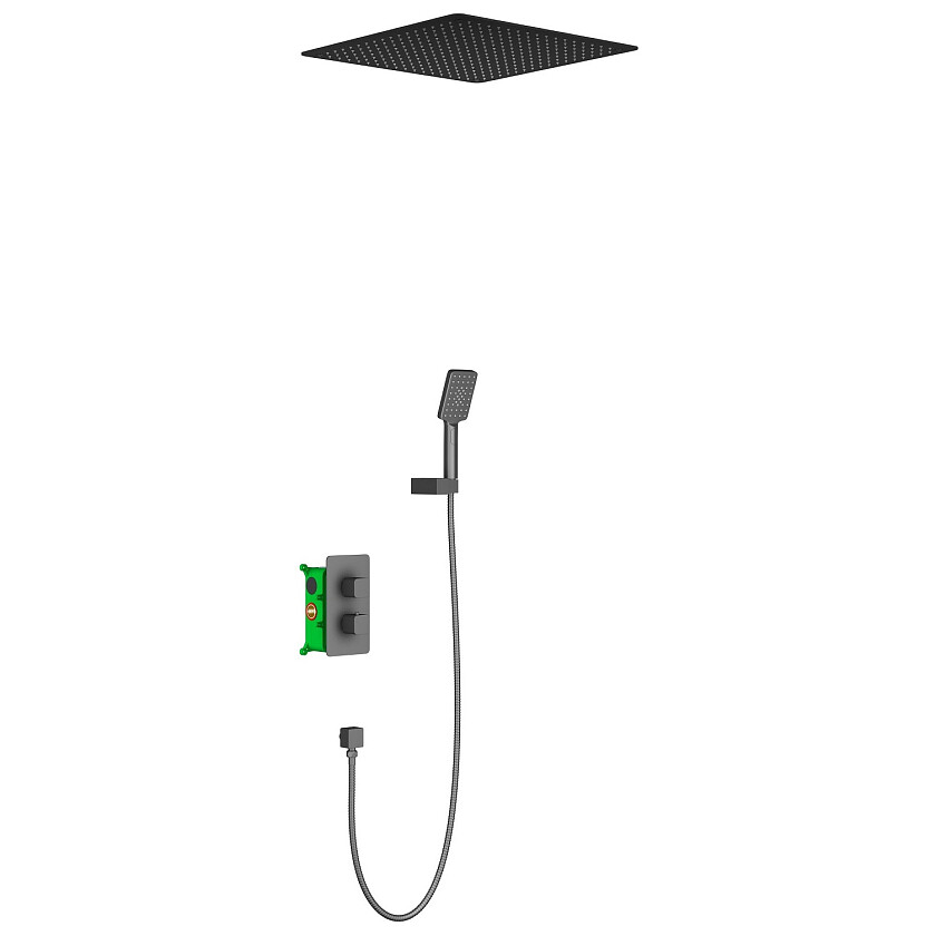 Душевой комплект встроенный с термостатом и тропическим душем черный Timo Petruma SX-5029-03SM - изображение 1