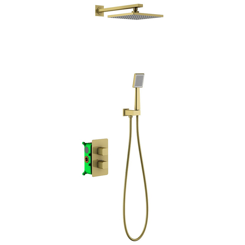 Душевой комплект встроенный с термостатом и тропическим душем золотой Timo Petruma SX-5059-17SM - изображение 1