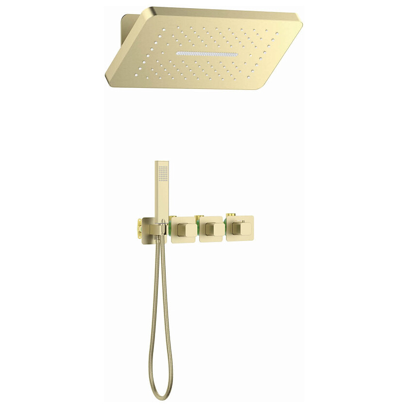 Цвет душевой системы, верхней и ручной лейки: золото матовое.