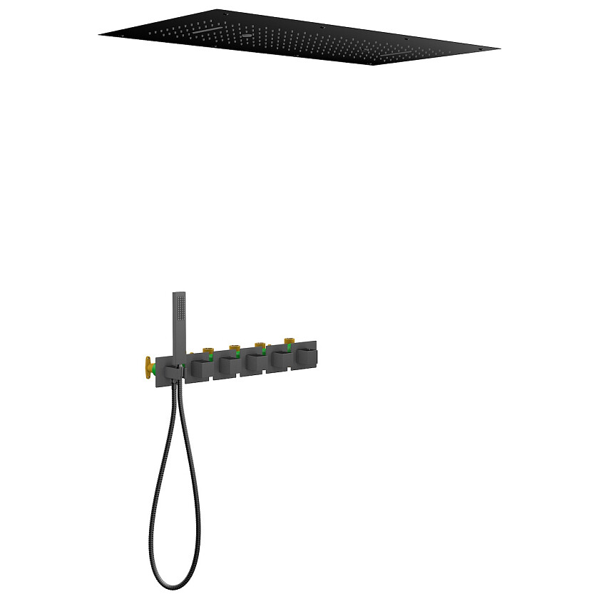 Душевой комплект встроенный с термостатом и тропическим душем черный Timo Petruma SX-5329-03SM - изображение 1