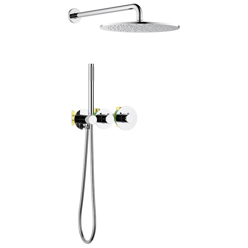 Душевая система с термостатом скрытого монтажа с круглой лейкой в стиле модерн сделана из латуни класса А.