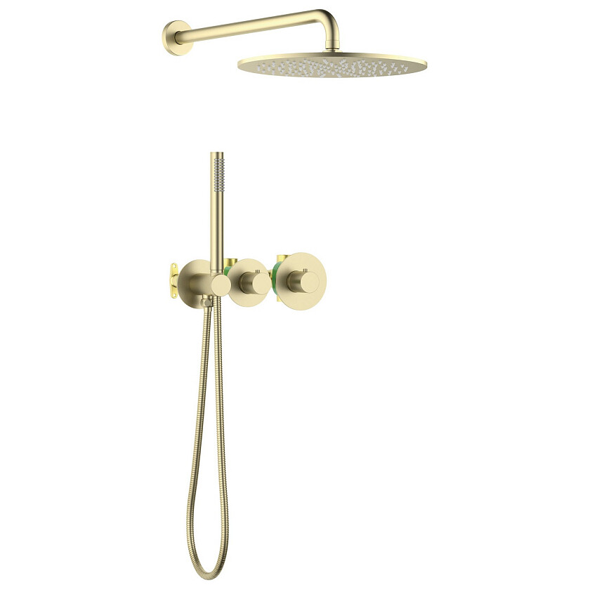 Цвет душевой системы, верхней и ручной лейки: золото матовое.