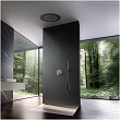 Использовать такой смеситель очень удобно, регулировка температуры воды осуществляется ручкой термостата (расположена снизу). Для включения режима «Ручнои душ» нажмите клавишу на панели с соответствующим символом. При повторном нажатии кнопки смеситель прекратит работу. Для включения режима «Тропическии душ» нажмите клавишу с символом «Тропическии душ». При включении режимов «Тропическии душ» и «Ручнои душ» напор воды максимальныи и не регулируется. Сложностей монтажа не возникает при установке элементов душевой системы опытным сантехником. Внимательно изучите инструкцию по монтажу и эксплуатации.