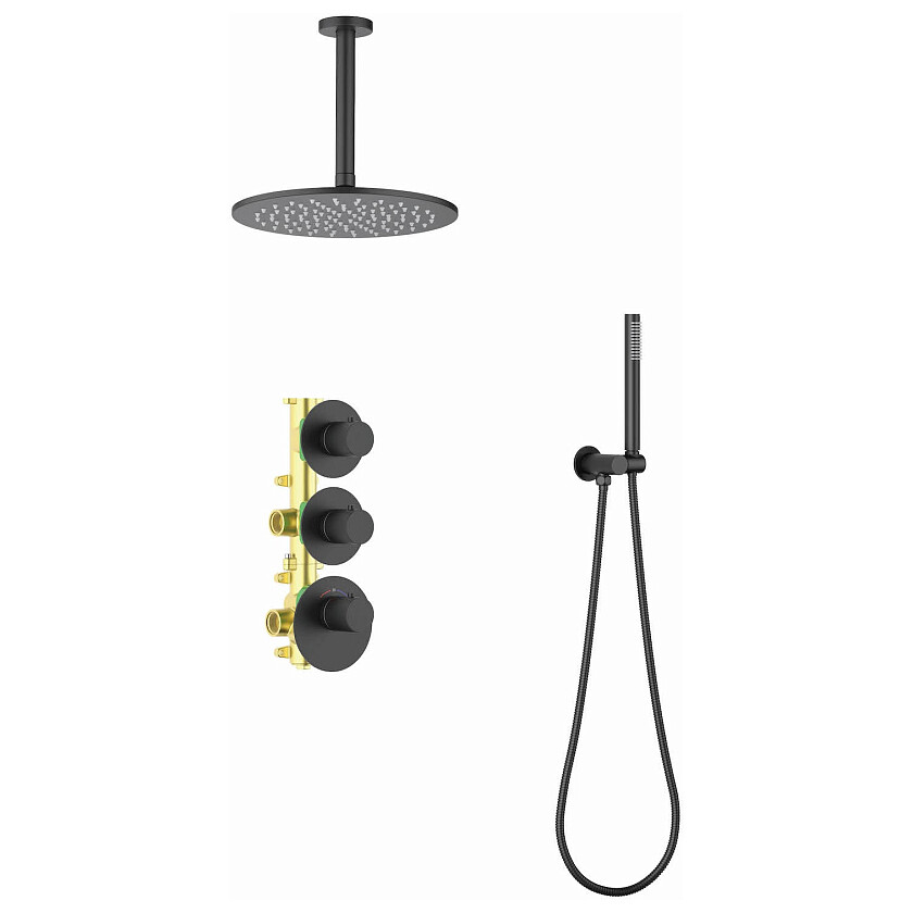 Цвет душевой системы, верхней и ручной лейки: черный.
