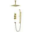Цвет душевой системы, верхней и ручной лейки: золото матовое.