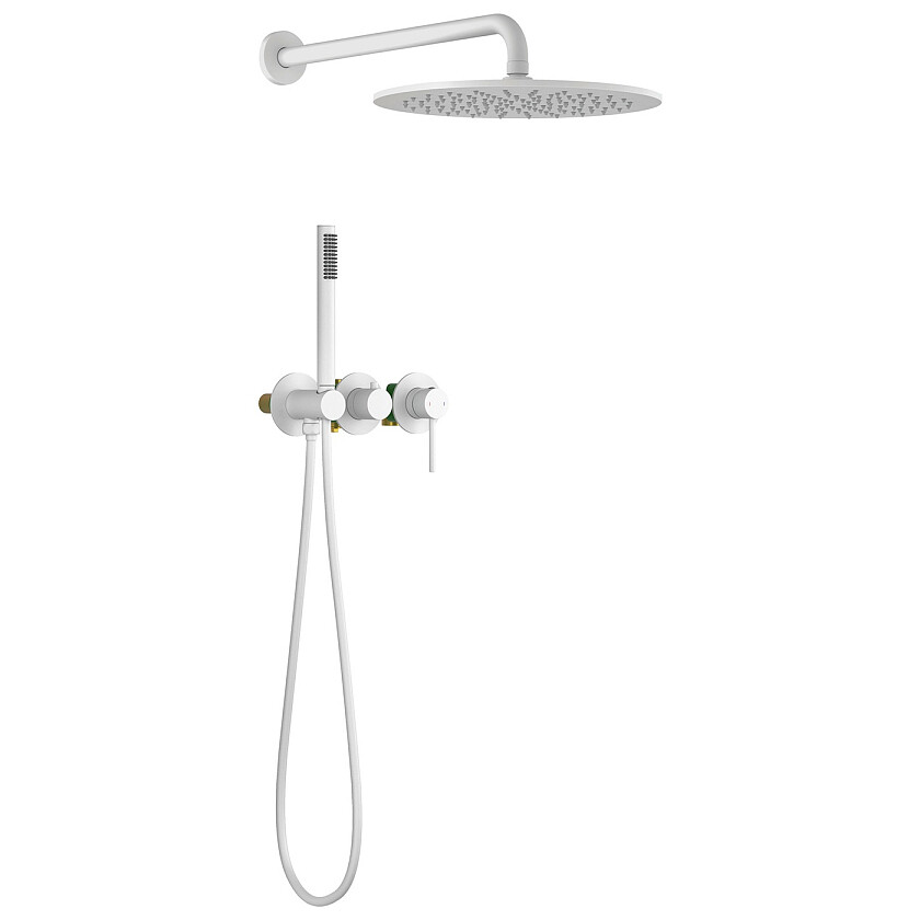 Смесители белого цвета универсальны и могут сочетаться с аксессуарами и отделкой стен разных цветов.