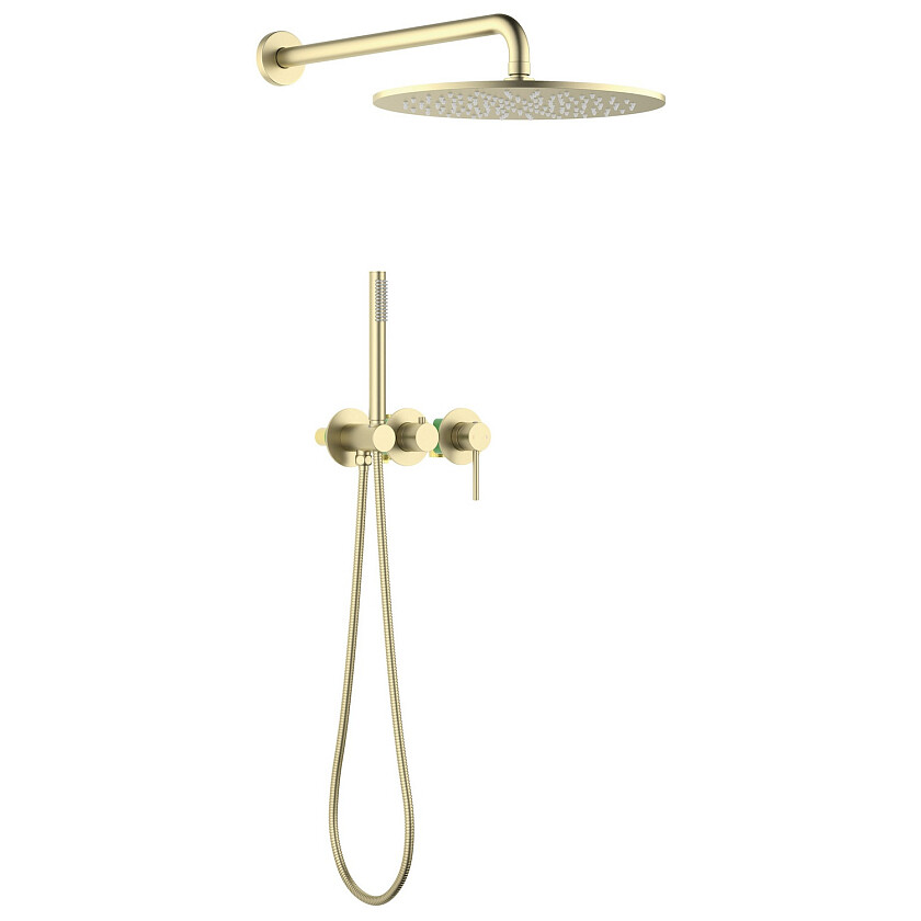 Цвет душевой системы, верхней и ручной лейки: золото матовое.