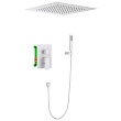 Встроенный потолочный душ большого размера создает имитацию проливного дождя, вода обливает человека целиком.