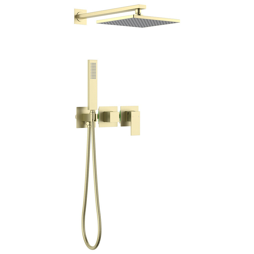 Цвет душевой системы, верхней и ручной лейки: золото матовое.