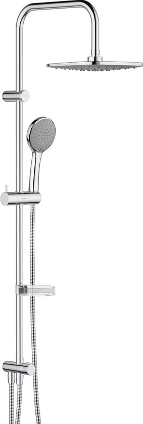 Комплектация: душевая стойка, верхний душ, лейка, шланг, мыльница, инструкция.