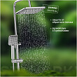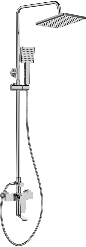 В комплекте — смеситель для ванны, аккуратная лейка квадратной формы, длинный полутораметровый шланг и настенное крепление.