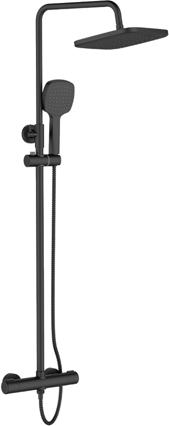 В комплекте со смесителем предусмотрена душевая стойка, состоящая из верхнего душа, 1-режимной лейки, шланга и держателя для душа.
