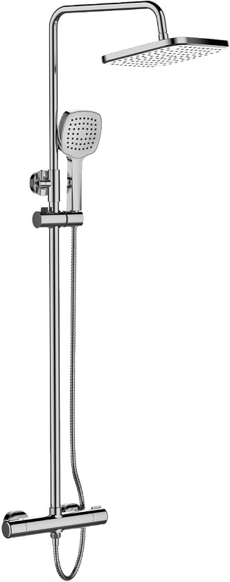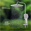 В комплекте со смесителем предусмотрена душевая стойка, состоящая из верхнего душа, 1-режимной лейки, шланга и держателя для душа.