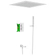Встроенный потолочный душ большого размера создает имитацию проливного дождя, вода обливает человека целиком. Регулируя напор воды можно получить массажное воздействие, что очень полезно для здоровья. Основные преимущества встроенной системы: элегантный внешний вид, все коммуникации и крепления спрятаны в стену и потолок, снаружи видны только декоративные элементы.