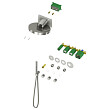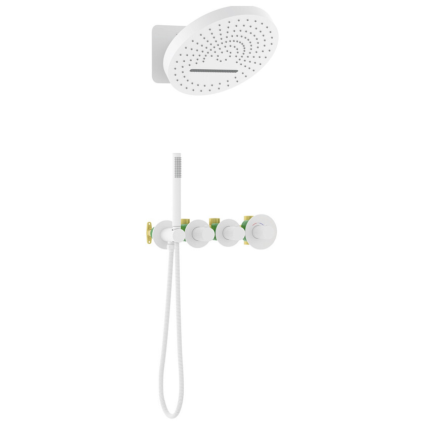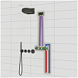 Настенный душ с двумя режимами позволяет принимать водные процедуры в зависимости от настроения. Регулируя напор воды можно получить массажное воздействие различной интенсивности. Используя режим "каскад"- получают седативное (успокаивающее) воздействие на затылочную часть головы или шейный отдел. Основные преимущества встроенной системы: элегантный внешний вид, все коммуникации и крепления спрятаны в стену, снаружи видны только декоративные элементы. Установить встроенную систему можно в любом месте. Использовать такой смеситель очень удобно, регулировка температуры воды осуществляется ручкой термостата (расположена справа).
