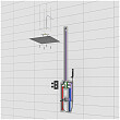 Встроенный потолочный душ большого размера создает имитацию проливного дождя, вода обливает человека целиком. Регулируя напор воды можно получить массажное воздействие, что очень полезно для здоровья. Основные преимущества встроенной системы: элегантный внешний вид, все коммуникации и крепления спрятаны в стену и потолок, снаружи видны только декоративные элементы.