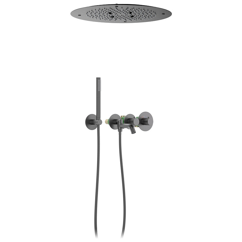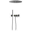 Основные преимущества встроенной системы: элегантный внешний вид, все коммуникации и крепления спрятаны в стену и потолок, снаружи видны только декоративные элементы. Установить встроенную систему можно в любом месте. Переключение режимов подачи воды (тропический душ, излив) осуществляется поворотом керамического дивертора. Для переключения потока воды с излива на ручной душ - поверните излив к стене.