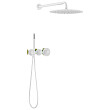 Установить встроенную систему можно в любом месте. Сложностей монтажа не возникает при установке элементов душевой системы опытным сантехником. Внимательно изучите инструкцию по монтажу и эксплуатации. Уход за такими смесителями самый легкий, на них практически не видны водяные разводы.