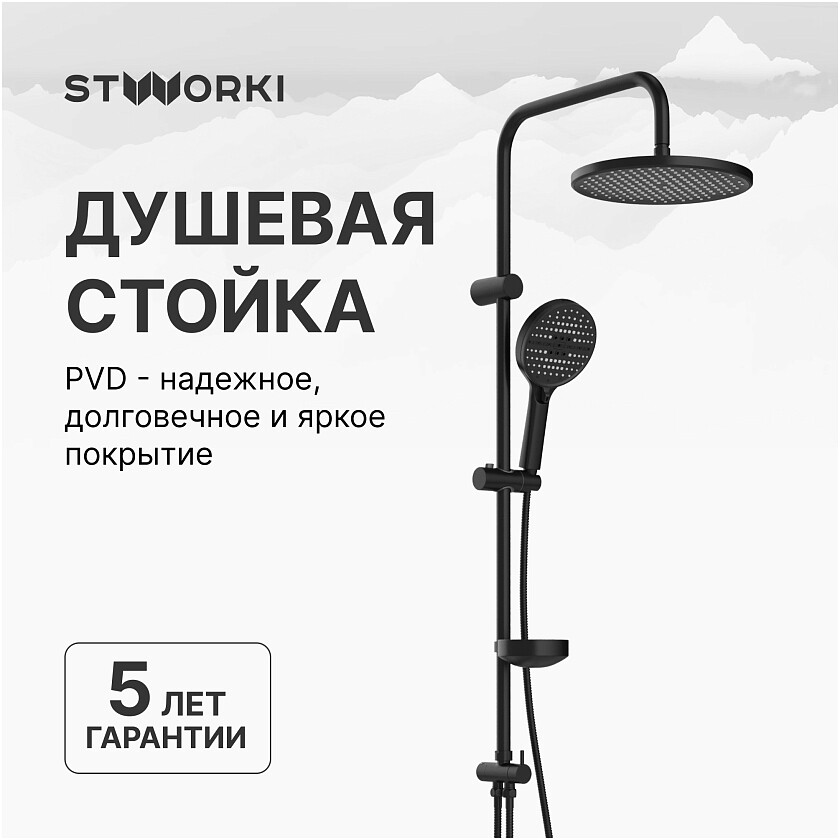 Душевая стойка с верхним душем черная Stworki "Хальмстад" S15180BK - изображение 6