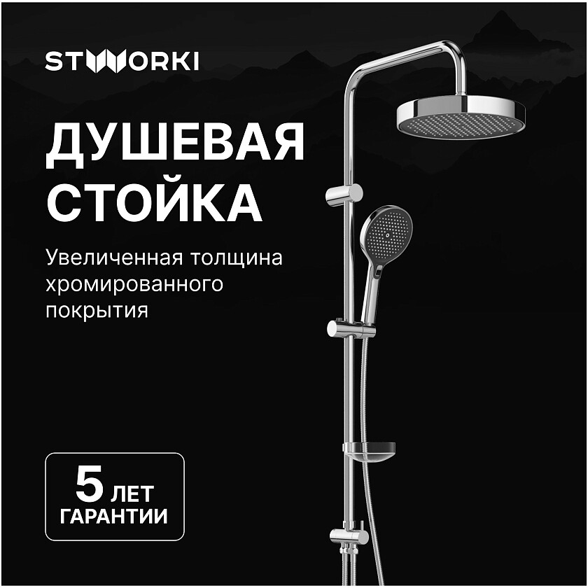 Душевая стойка с верхним душем хром Stworki "Монтре" S30180CR - изображение 3