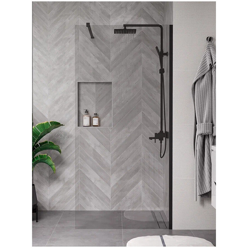 Душевая перегородка, ограждение Reflexion RX200100CBL-13 Walk in 200x100 см, прозрачное закаленное стекло 8 мм, черный профиль.