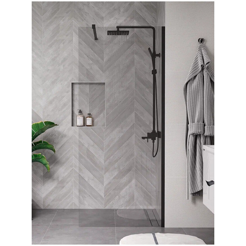 Душевая перегородка, ограждение Reflexion RX20090CBL-14 Walk in 200x90 см, прозрачное закаленное стекло 8 мм, черный профиль.
