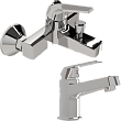 Комплектация: смеситель для раковины. комплект подводки, набор креплений, смеситель для ванны с душем, эксцентрик - 2 шт., инструкция - 2 шт.