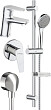 Комплектация: смеситель для раковины, смеситель для душа, монтажная часть, комплект подводки, набор креплений, душевая штанга, лейка, шланг, шланговое подключение, инструкция - 3 шт.