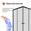 Ориентация дверей универсальная. Используется раздвижной механизм — створки скользят по направляющим тихо и мягко при помощи прочных роликов. Такая конструкция значительно экономит место в ванной комнате.