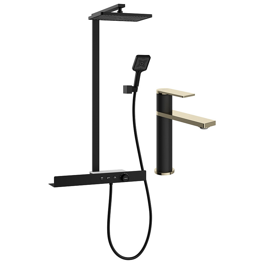 Душевой комплект с тропическим душем черный Stworki "Олланд" S01010BG, S01170BG - изображение 1