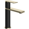 Смеситель для раковины STWORKI Олланд S01010BG, матовый черный, глянцевое золото.