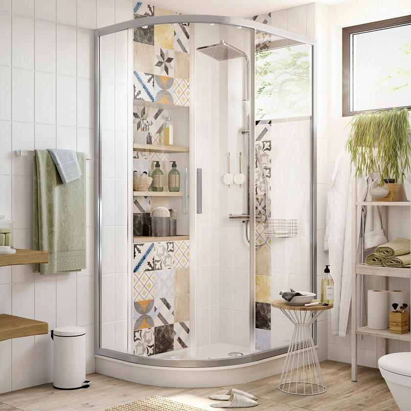 Используется в каркасах душевых кабин и перегородок, влияет на дизайн и долговечность.