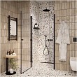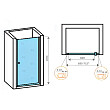 Распашная дверь образует вход комфортной ширины. Модель из прозрачного закаленного стекла (5 мм). Полотно из закаленного стекла устойчиво к случайным ударам. В случае битья, стекло рассыпается на множество мелких граней с тупыми концами.