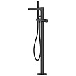 Дополнительные функции комментарии: Напольный смеситель для ванны Характеристики: - Керамический картридж 35мм, Sedal (Испания); - Встроенный пластиковый аэратор Neoperl HONEYCOMB (Германия) для равномерного распределения струи; - Автоматический кнопочный переключатель на душ; - Покрытие черный Soft-touch. Входит в комплект: - Лейка 1-функциональная с системой защиты от известковых отложений; - Шланг металлический, 1500 мм, подключение к лейке; - Набор для монтажа; - Круглый уровень (нивелир).