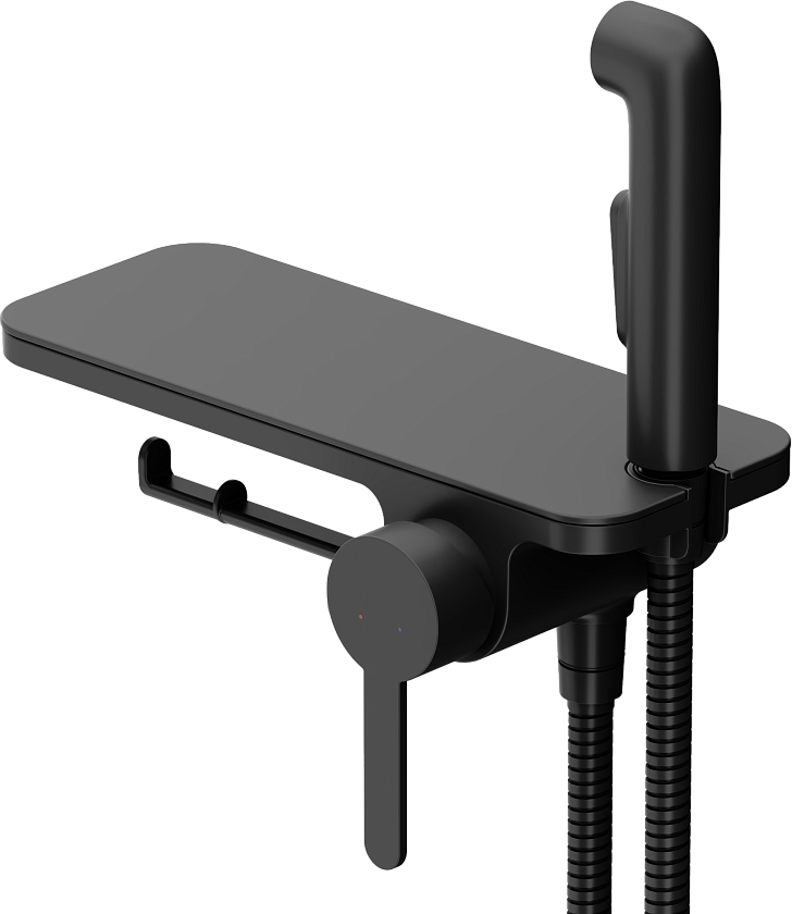 В коробке: гигиенический душ - 1 шт., смеситель - 1 шт., монтажная часть - 1 шт., шланг - 1 шт., Полочка - 1 шт. инструкция - 1 шт.