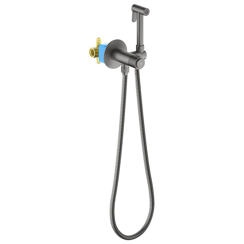 AQ1023BGM БЕТТА комплект для гигиенического душа Select встроенный (смеситель + гигиеническая лейка + шланг), оружейная сталь (шлиф. черный хром)