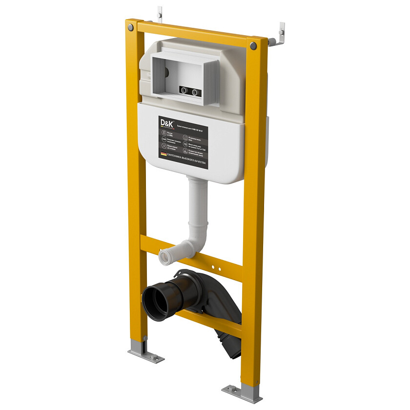 Инсталляция D&K - это система креплений и приспособлений, позволяющих произвести установку подвесного унитаза. Крепится она к стене или за специальным декоративным коробом. На раму устанавливается чаша подвесного унитаза, сливной бачок, различные приспособления и механизмы, вентили и краны, предохранительные клапаны. Также система инсталляции позволяет подключать трубы для подачи и отведения воды.