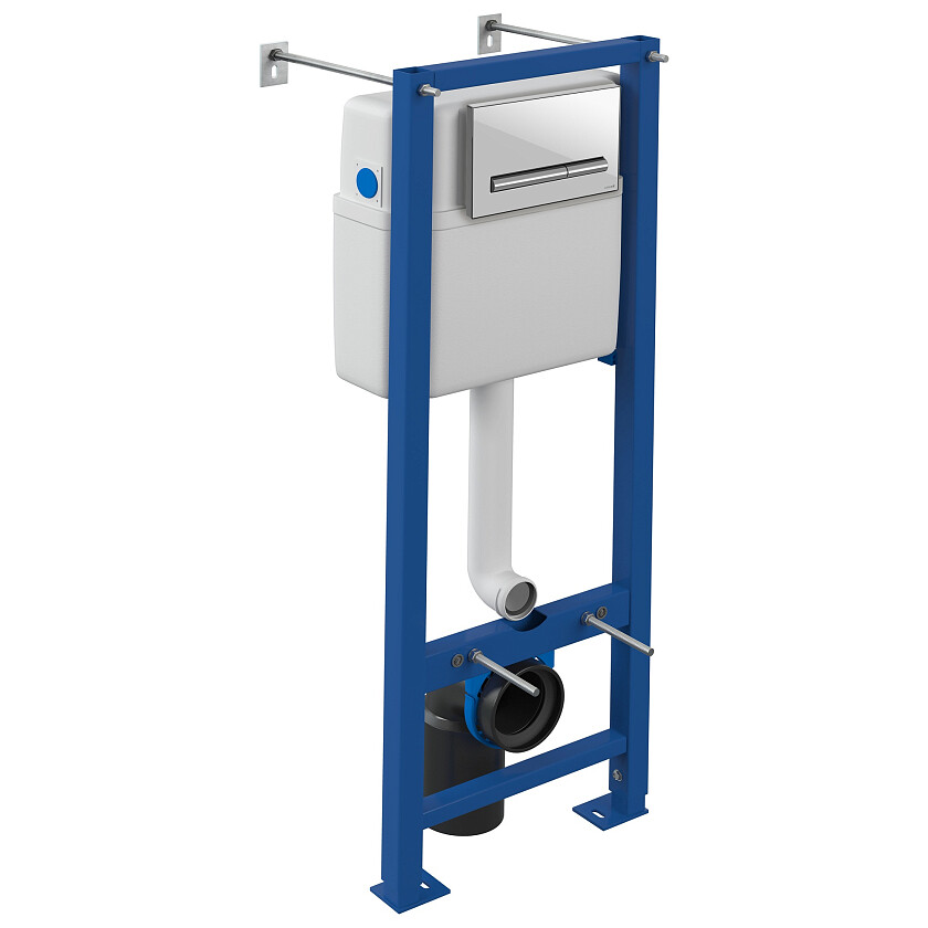 Для установки подвесного вида сантехники требуется опорная рама — так называемая инсталляция для унитаза. Эта скрытая в стене конструкция предназначена для крепления унитаза и коммуникационных узлов.