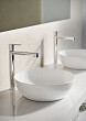 С умывальником UNI мы рекомендуем на столешницу устанавливать высокие смесители Chrome CR 015.00 высотой 311 мм или смеситель 10° TD 015.00 высотой 334 мм.