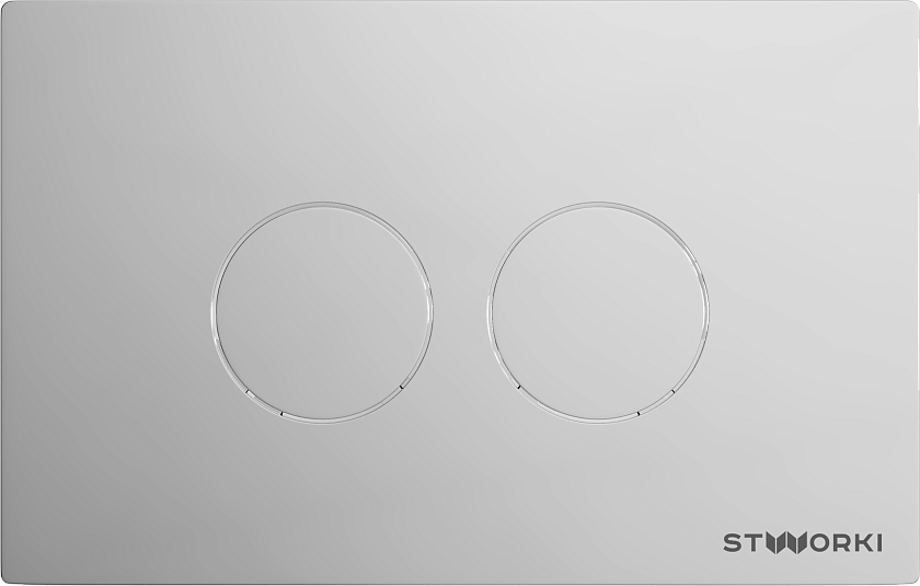 Кнопка смыва STWORKI Хельсинки для бытового применения. Для изготовления используется качественный пластик, который легко очищать от загрязнений. Размер составляет 260×170 мм — удобно нажимать на клавиши. Благодаря двум режимам смыва можно контролировать расход воды. Одна часть клавиши производит полный спуск из бака, другая отвечает за экономичный смыв.