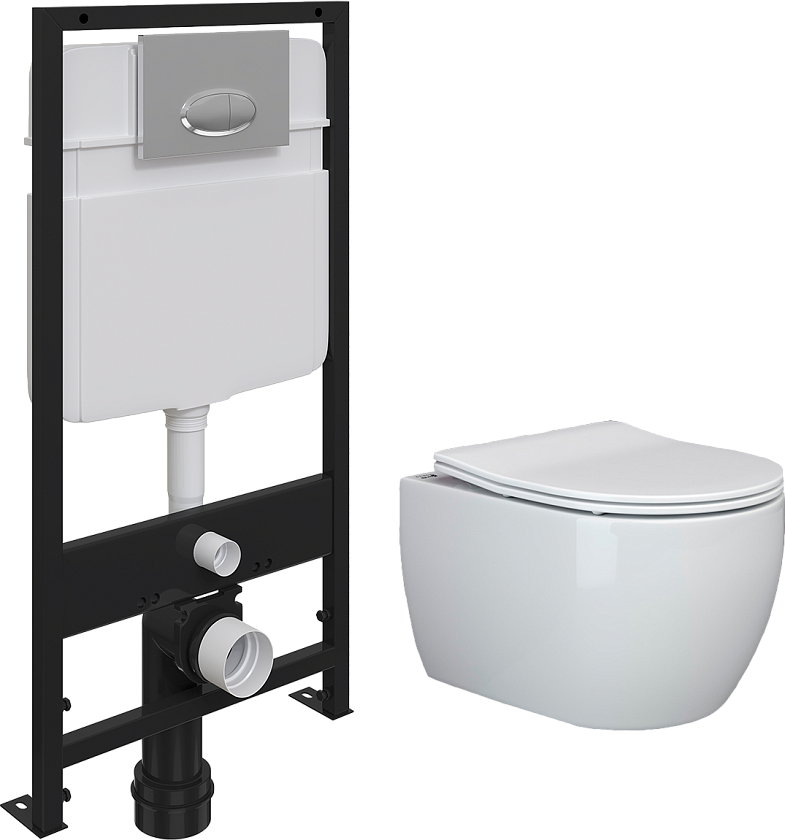 Унитаз белый Ceramicanova Play CN3001 с инсталляцией Ewrika ProLT 0026-2020 и кнопкой хром 0051 - изображение 1