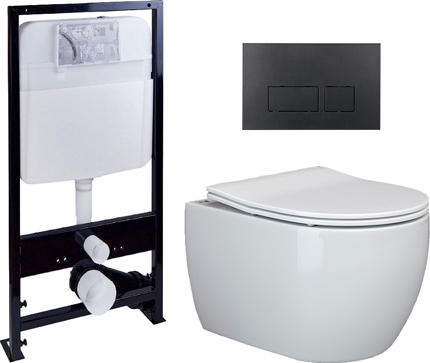 Унитаз белый Ceramicanova Play CN3001 с инсталляцией Ewrika ProLT 0026-2020 и черной кнопкой 0044