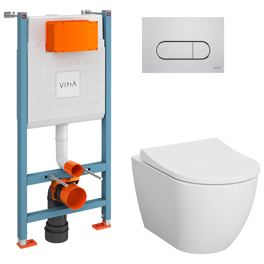 Унитаз подвесной с инсталляцией и кнопкой смыва матовый хром Vitra Mia Round 9873B003-7201 - изображение 1