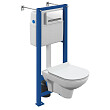Комплект CITY Clean On с ультратонким антибактериальным сиденьем из дюропласта с функцией плавного закрывания и легкосъемом, с инсталляцией VECTOR и стеклянной кнопкой смыва PILOT.