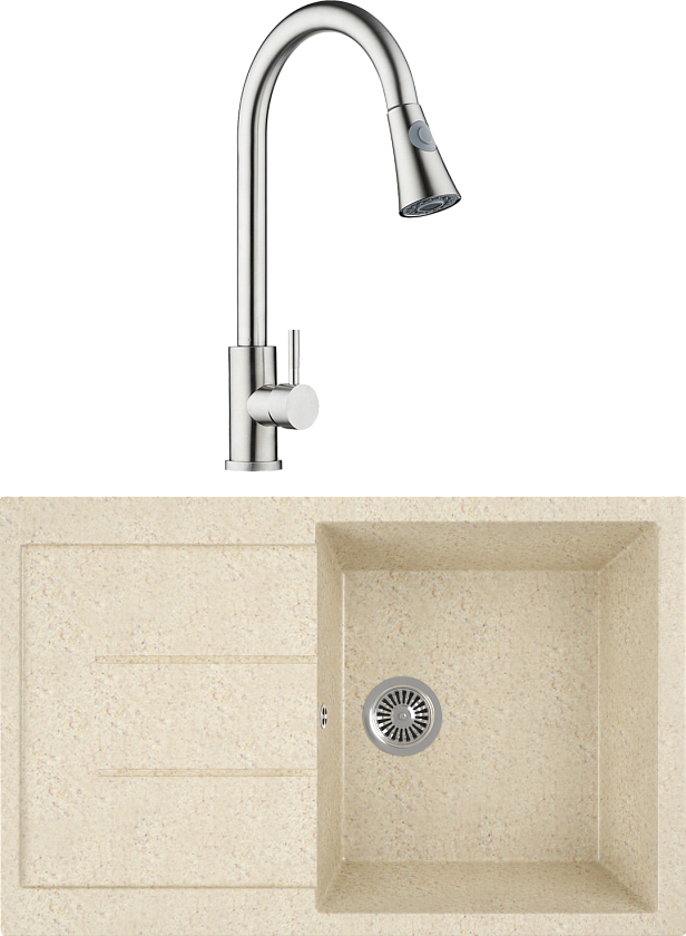 Мойка кухонная бежевая Domaci "Бьелла" DMC-25 со смесителем "Равенна" D99-120st
