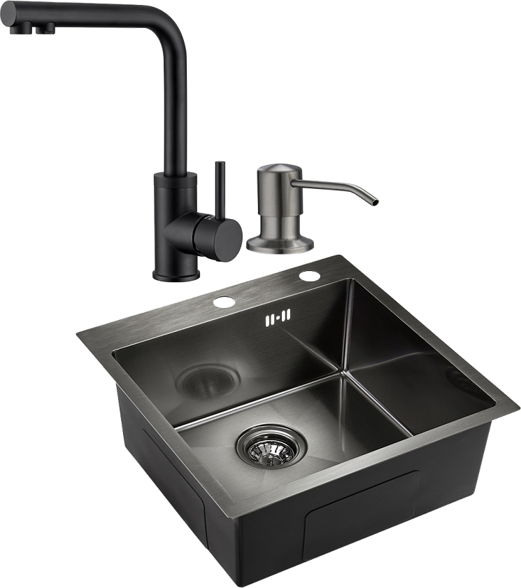 Мойка кухонная Domaci Равенна PVD DMB-117A черная, металлическая, квадратная, встраиваемая.