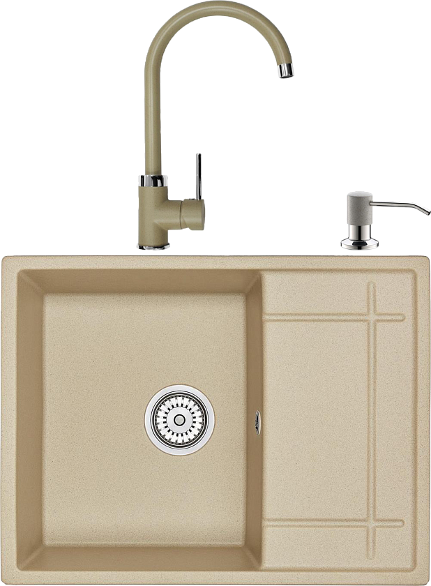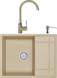 Мойка кухонная 65х50 см бежевая Domaci "Солерно" EMQ-1650.Q со смесителем EC-3004 и дозатором 401