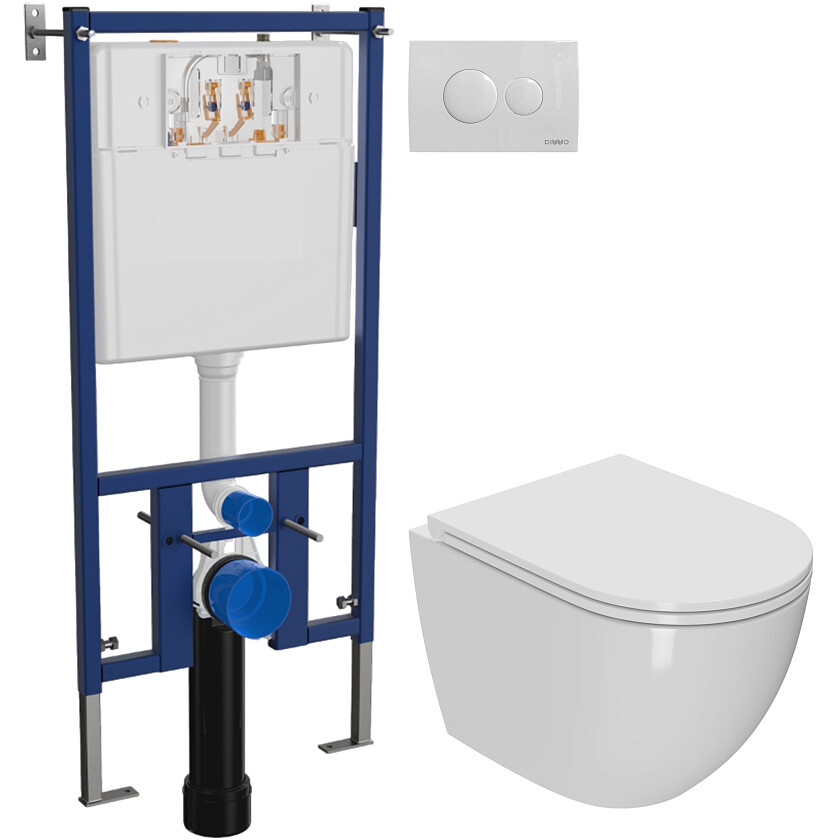 Унитаз подвесной Bauedge Bau Dream с инсталляцией Diwo 4501 и кнопкой смыва Diwo 7310